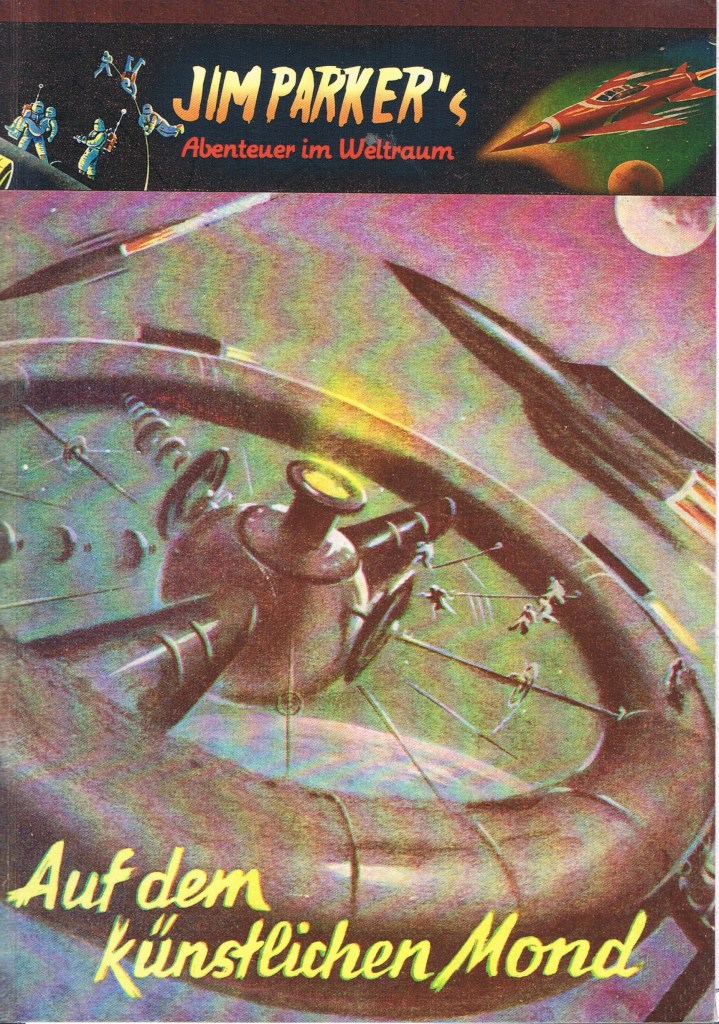 Auf der Raumstation war ich schon lange vorher mit Jim Parker gewesen – in Heft 4 der Serie mit dem Titel „Auf dem künstlichen Mond“. 1953 war das, und es galt dort allerlei Abenteuer zu bestehen, welche heutige Astronauten in der ISS nur den Kopf schütteln oder (etwa bei Schießereien an Bord zwischen hauchdünnen Stahlwänden) die Haare zu Berge stehen lassen würden.