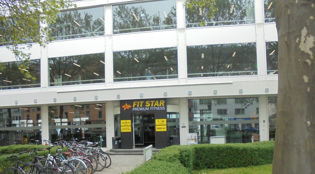Das FitStar-Studio ist gleich bei meiner Wohnung „um die Ecke“ – durch den Maßmann-Park, sieben Minuten zu Fuß. Ein sehr großzügig dimensioniertes Studio auf drei Stockwerken. Früh am Morgen ist da noch nicht viel los. Am Freitag hatte ich in der Zeitung gelesen, dass Fitness-Studios wieder öffnen. Einige Tage Kampf mit der Trägheit des „Inneren Schweinehunds“. Ich fürchtete, dass das Studio über Pfingsten zu sehr frequentiert wird – das wollte ich nicht, trotzdem ich bereits seit einigen Wochen geimpft bin. Aber ich wollte das Risiko, mir doch noch eine Aerosolwolke mit Corona-Viren einzufangen, sehr gering halten.