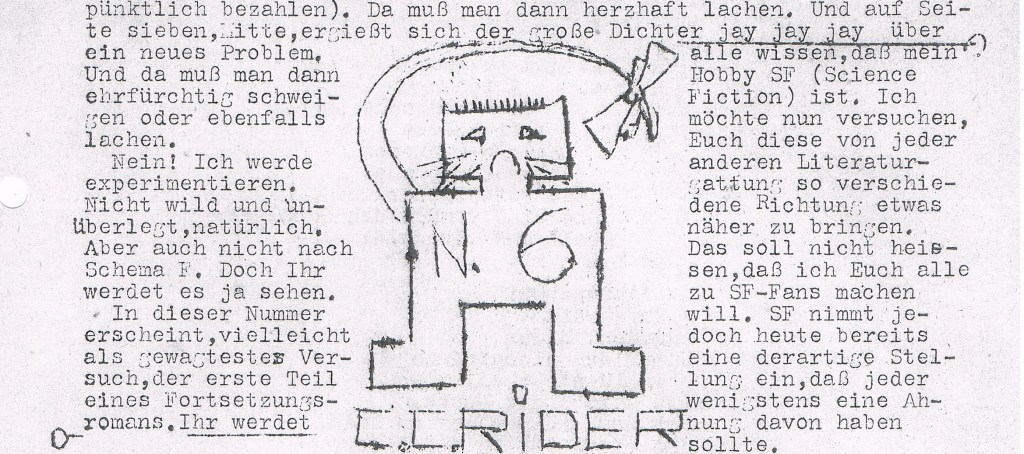 Für manche von uns spielte da auch die Science-Fiction-Literatur eine „abgrenzende“ Rolle – wie alle unsere Hobbies und Gewohnheiten und Vorlieben, die vor allem eine Funktion hatten: Sie war „unser eigenes“ – schon deshalb, weil die Erwachsenen nichts davon verstanden und es im Idealfall sogar heftig bekämpften: bei den Mädchen die Petticoats und bei uns Buben die „Röhrenhosen“. Das alles half, eine eigene soziokulturelle Position zu finden – und dabei nicht zuletzt allmählich auch zu entdecken, wie belastet die Vergangenheit unserer Eltern aussah, die in der Nazi-Diktatur aufgewachsenen waren und diese meistens tatkräftig gefördert hatten.