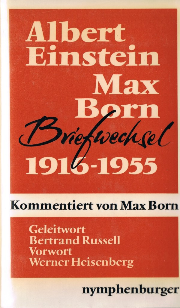 Weit mehr waren meine wissenschaftlichen Kenntnisse gefragt beim Super-Hit, auf den Verleger (und Chemiker) Spangenberg mit Recht sehr stolz war (und ich als Lektor natürlich ebenfalls), weil daran vier Nobelpreisträger beteiligt waren: Der Briefwechseln zwischen Albert Einstein und Max Born, mit Geleitwort von Bertrand Russell und Vorwort von Werner Heisenberg. Zu meiner Tätigkeit als Lektor gehörte diesbezüglich auch der Briefwechsel mit den noch lebenden Beteiligten bzw. ihrer Mitarbeitern.