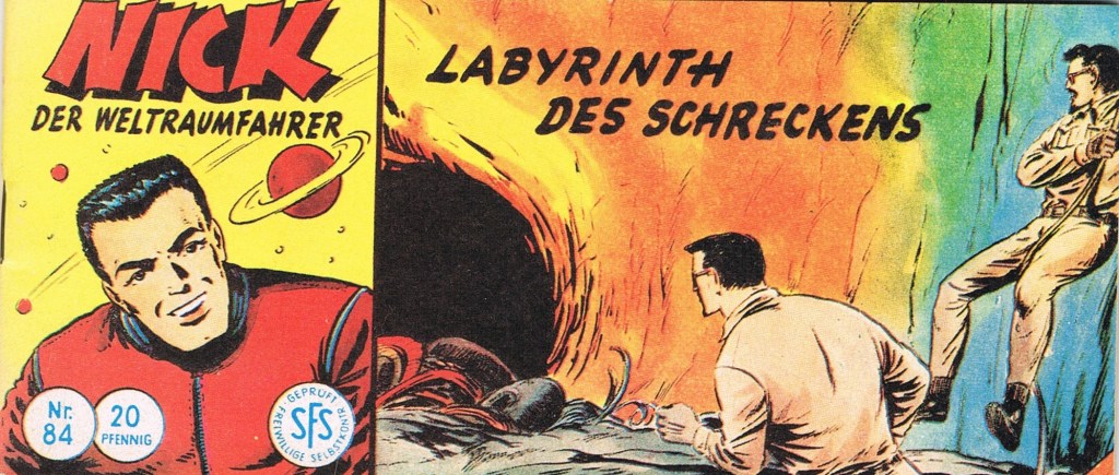 Nick der Weltraumfahrer wurde Anfang der 1950er Jahre im schmalen Piccolo-Format veröffentlicht, das man bequem mit sich herumtragen konnte (und gut versteckt – die Erwachsenen verfolgten solchen Schund mit Argusaugen). In der Episode 84 wagt Nick sich auf einem fernen Planeten in ein „Labyrinth des Schreckens“.