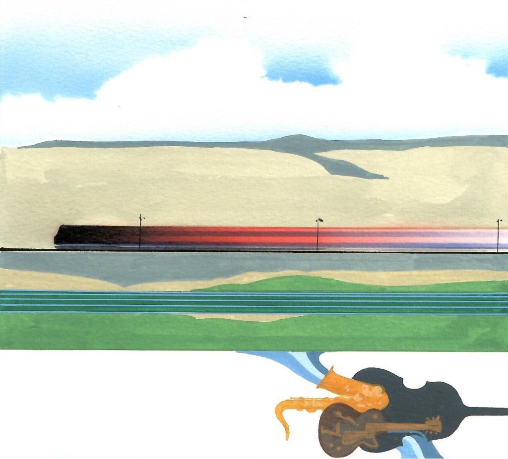 Bild 6: Eines meiner Lieblingsbilder aus Alfred Hertrichs Werkstatt: „The Train and the River“ nach Jimmy Guiffre (Details und Link s. unten – Aquarell von Alfred Hertrich aus dem Jahr 2005)