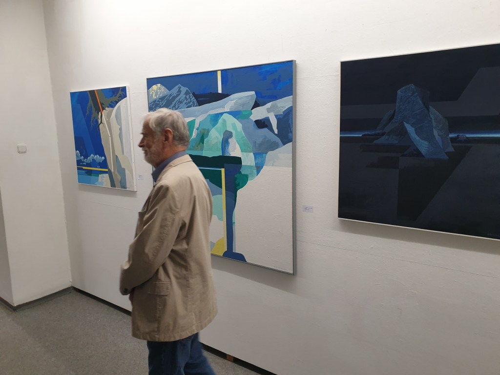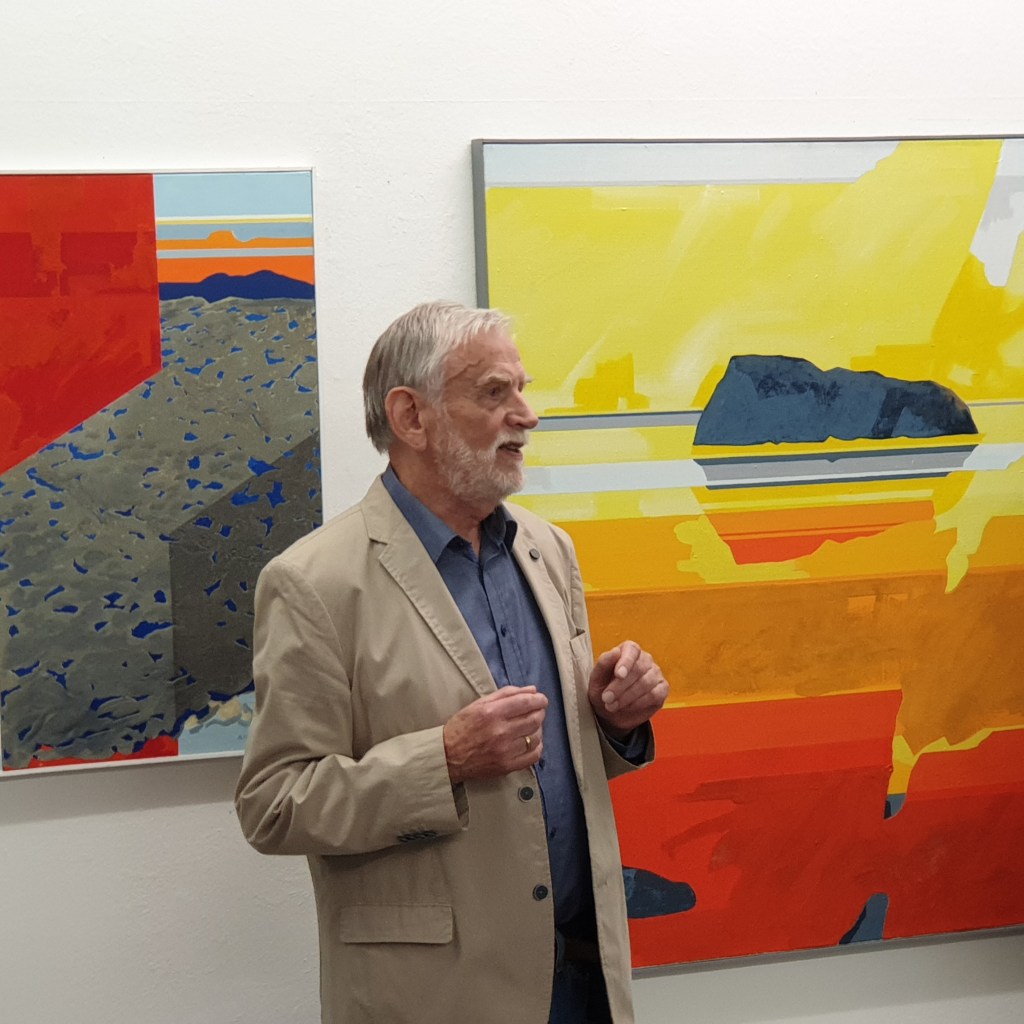 Bild 7: Alfred Hertrich vor drei seiner Bilder 2023 in Weiden (01. Sep bis 01. Okt 2023) (Foto: Stefan vom Scheidt)
